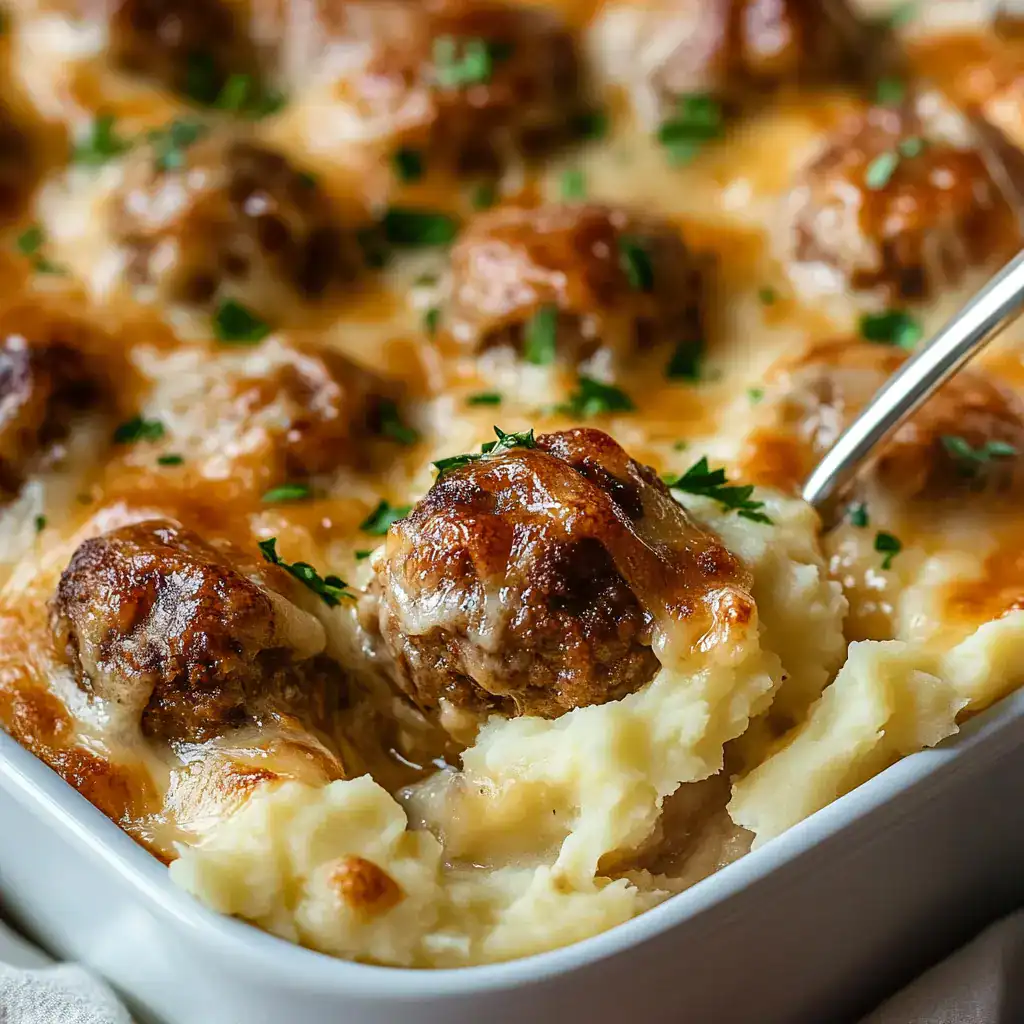 Meatball and Mashed Potato Bake