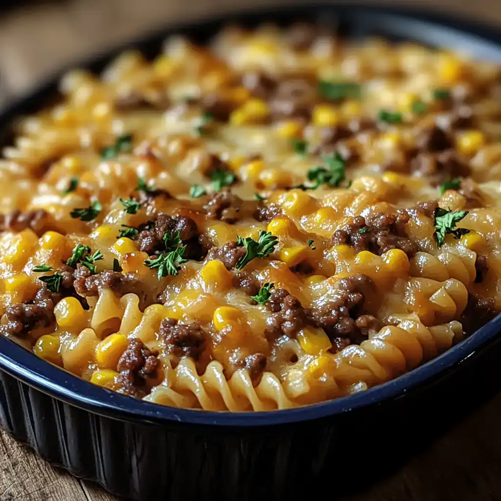 Cheesy Beef and Sweet Corn Rotini Bake