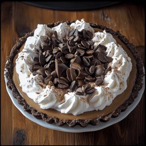 - Spread or pipe the whipped cream over the pie and garnish with cocoa powder or chocolate shavings.