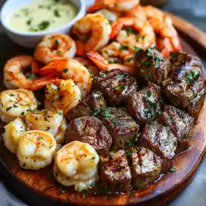 This dish is a celebration of bold flavors and simple preparation. The combination of juicy steak bites and perfectly cooked shrimp creates a delightful contrast of textures, while the garlic butter sauce ties everything together with its creamy, savory goodness. Whether you’re a seasoned home cook or just starting out, this recipe is approachable and rewarding. Plus, it’s versatile enough to pair with a variety of sides, making it suitable for any occasion.