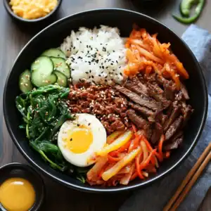 This Korean Beef Bibimbap Bowl is more than just a meal—it’s an experience. From the vibrant colors of the vegetables to the rich, savory flavors of the marinated beef and spicy gochujang sauce, every element comes together to create a dish that’s as beautiful as it is delicious. Whether you’re serving it for lunch, dinner, or a special occasion, this bibimbap bowl is sure to impress.