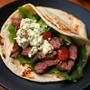 Smoked Beef and Bleu Cheese Pita Wrap: A Delicious Fusion of Smoky, Creamy, and Fresh Flavors