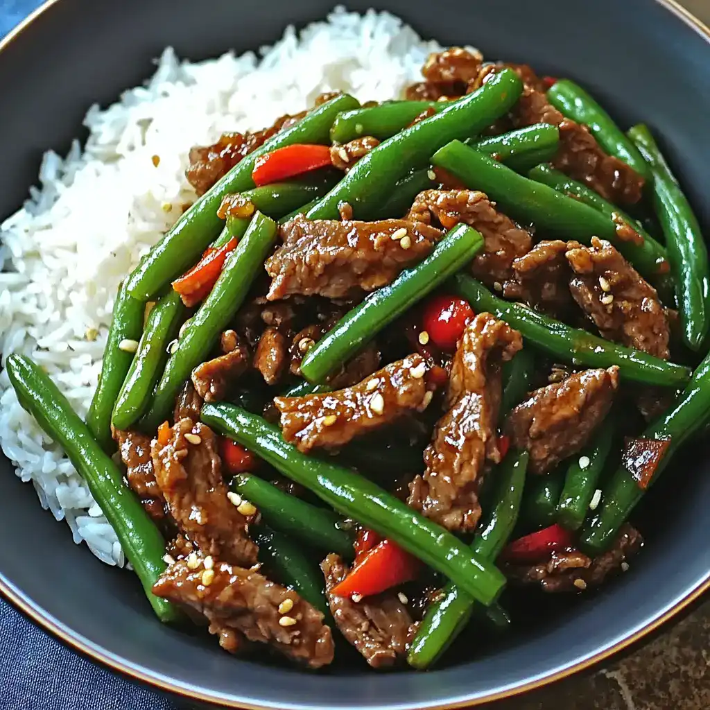 - Return green beans to the skillet, pour in the sauce, and toss everything together. Simmer for 1–2 minutes until sauce thickens and coats the beef and beans.