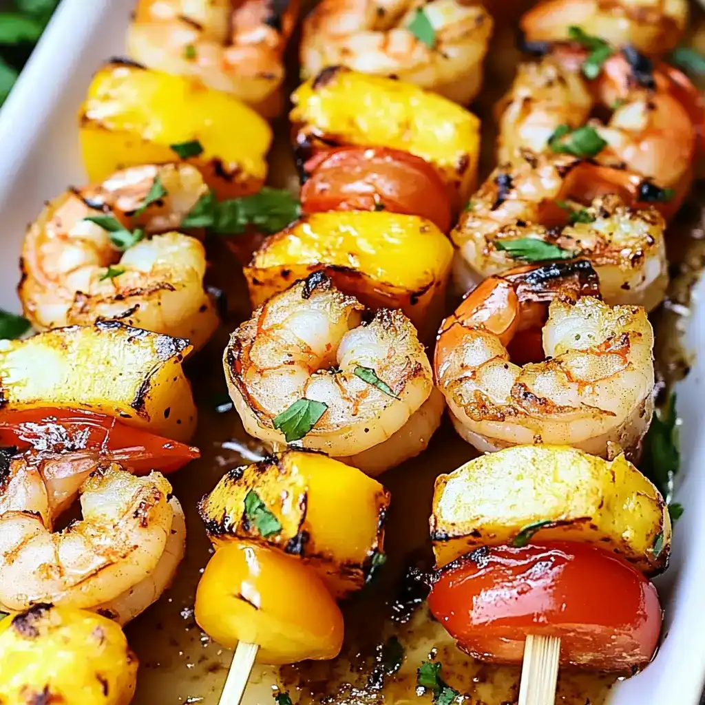These Grilled Shrimp Pineapple Skewers are not only delicious but also incredibly versatile. The savory shrimp, complemented by the sweetness of fresh pineapple, is perfect for those who crave a refreshing, tropical-inspired dish. The quick prep time, combined with the ease of grilling, makes this recipe a go-to for busy weeknights, BBQs, or casual gatherings. The sweet and smoky flavors blend beautifully, while the light marinade enhances the shrimp’s natural flavor. The dish is: